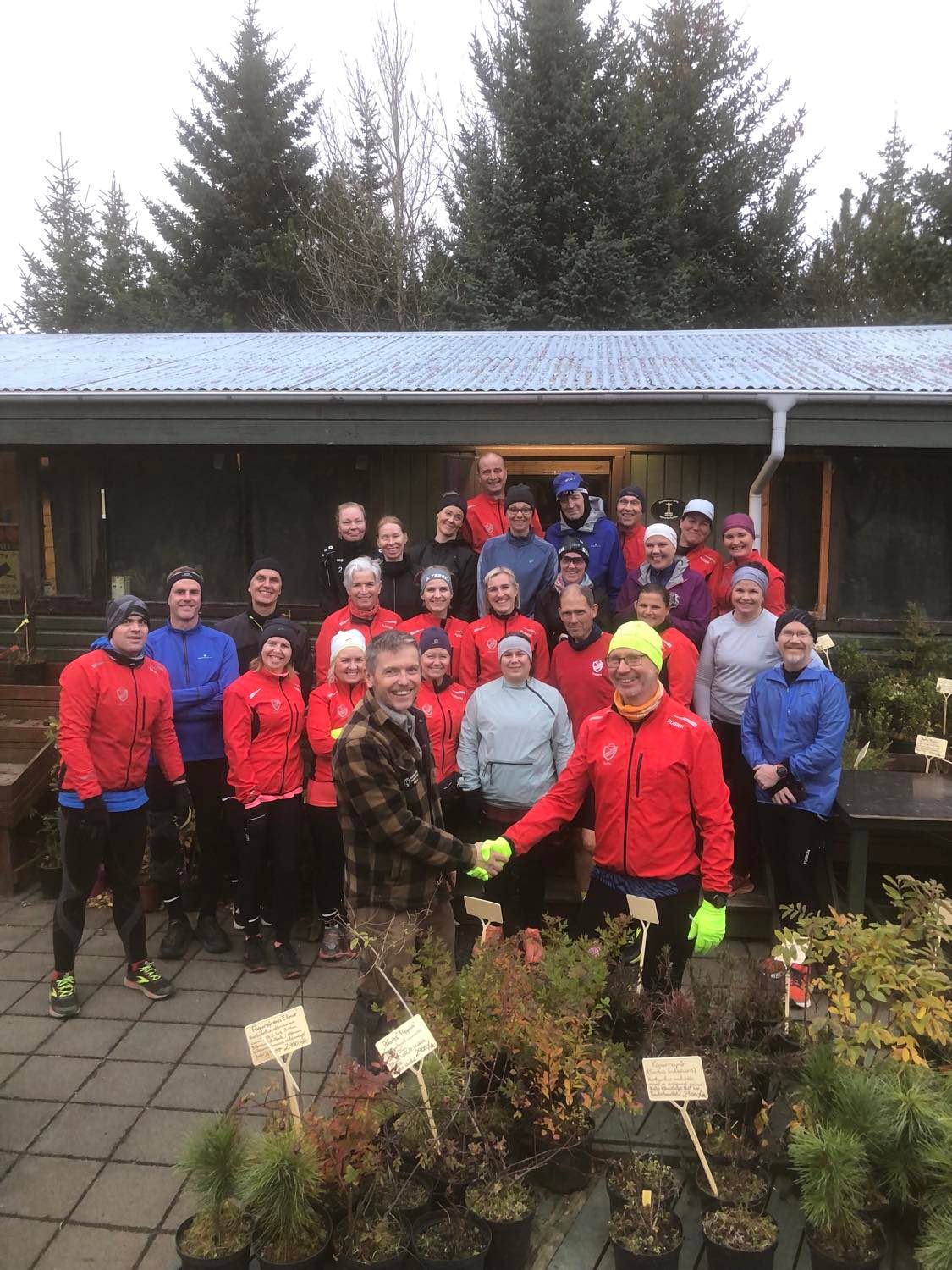 Skokkhópur Hauka kom við hjá okkur seinni partinn í gær og afhenti félaginu formlega styrk sem þakklætisvott til félagsins fyrir alla stígana sem félagið hefur lagt í upplandinu. Utanvegahlaup Hauka fer alltaf fram um hvítasunnuna á stígum félagsins og er eitt allra vinsælasta utanvegahlaup landsins. Skokkhópur Hauka æfir einnig reglulega á stígum í skóglendum félagsins. Félagið þakkar kærlega fyrir styrk þennan en þetta er ekki í fyrsta skipti sem skokkhópur Hauka (Almenningsíþróttadeild Hauka) afhendir félaginu styrk og fyrir það erum við afskaplega þakklát. Á myndinni má sjá Skokkhóp Hauka sem heimsóttu félagið í gær. Fremst á myndinni standa Steinar Björgvinsson framkvæmdastjóri Skógræktarfélags Hfj og Stefán Georgsson sem er í forsvari fyrir skokkhóp Hauka.